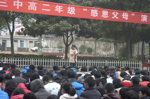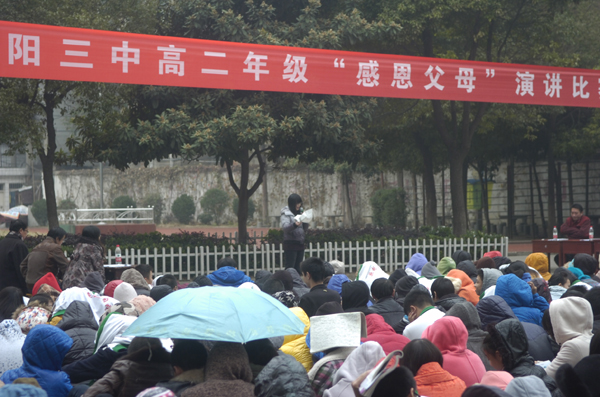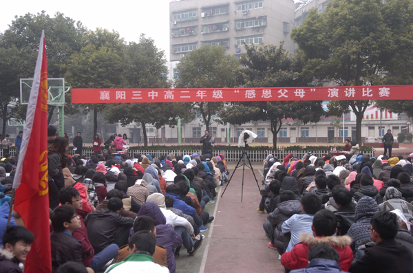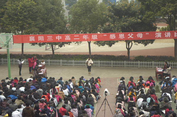 “父母之恩,水不能溺,火不能滅”。感恩節(jié)即臨,襄陽三中高二年級于11月20日下午組織學生,開展以“感恩父母”為主題的演講比賽。天氣似乎在考驗高二全體師生的意志和誠意,和著習習寒風,飄起了絲絲細雨。但全體師生仍然安守秩序,聆聽著18位選手激情澎湃的演講,會場上不時爆發(fā)出雷鳴般的掌聲。經(jīng)過激烈的比賽,17班季寧悅,1班張夢蝶,6班王春煜獲得一等獎,15班李爽健,11班木榮,16班孫援,5班王旭東,3班鄒潔,18班劉靜獲得二等獎,13班杜雙婧,2班陳高雁,14班李鴻鵠,8班陳潔,12班徐雨帆,9班趙錦琳,10班劉燚,4班操凌寒,7班劉谷雨獲得三等獎。