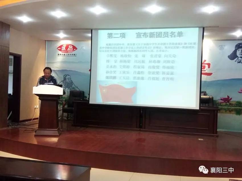 2017年5月4日下午,襄陽三中2017年新團(tuán)員入團(tuán)儀式在多媒體會(huì)議廳隆重舉行。正值五四青年節(jié),我校團(tuán)組織又迎來了新一批優(yōu)秀成員的加入。學(xué)校紀(jì)委書記陳斌、政教處主任張東、團(tuán)委副書記吉芳以及高一年級師生代表一同見證了這一神圣而莊嚴(yán)的時(shí)刻。