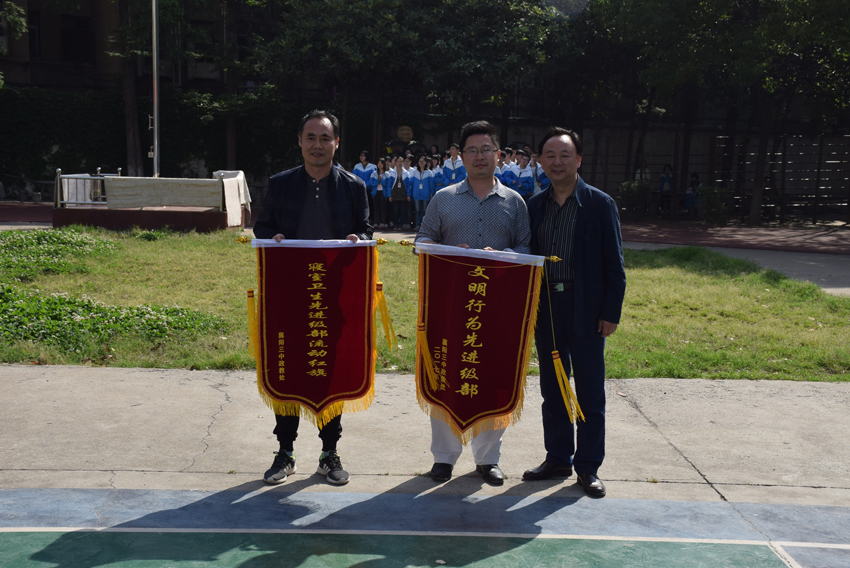 為全面貫徹落實“創(chuàng)建文明城市、創(chuàng)建文明校園”,進一步加強學生日常行為規(guī)范教育,優(yōu)化學校環(huán)境,規(guī)范學生言行,培養(yǎng)文明習慣,我校開展了“文明規(guī)范月”活動。活動共評選出2個“文明行為先進級部”、 2個 “寢室衛(wèi)生先進級部”、 20個“文明行為示范班級”、 18個“陽光跑操先進班級”、45個“文明模范寢室”和 108人“文明之星”,校紀委書記陳斌、副校長曹威、政教處主任張東對獲獎級部、班級、寢室、個人頒發(fā)錦旗、獎牌、證書。