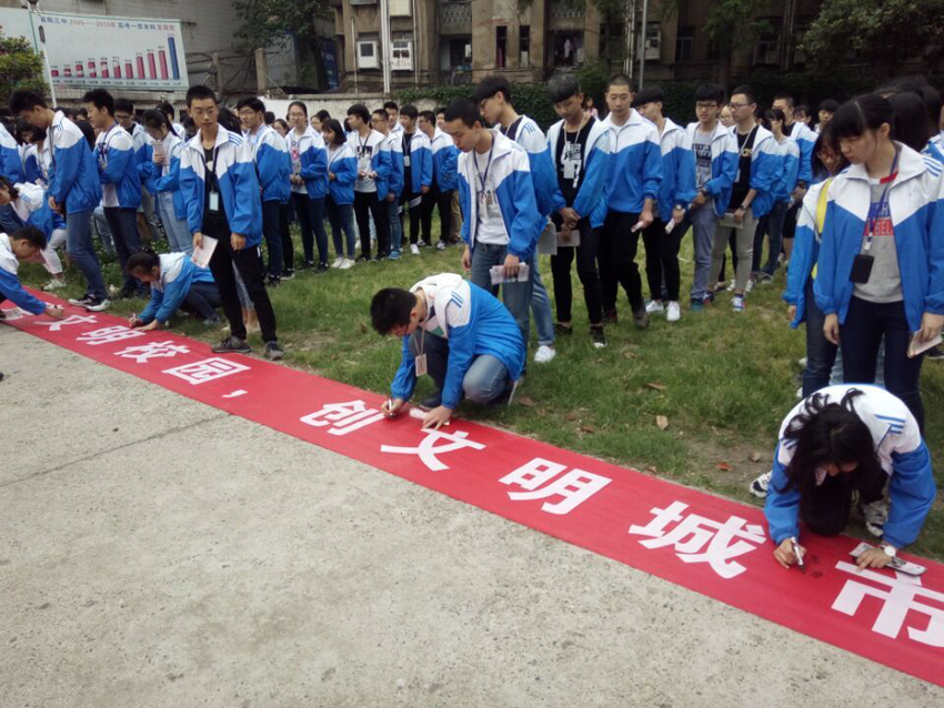 創(chuàng)建全國文明城市、創(chuàng)建文明校園,我知曉我參與我奉獻(xiàn)我快樂。襄陽三中舉辦學(xué)生簽名活動。
