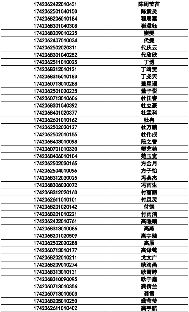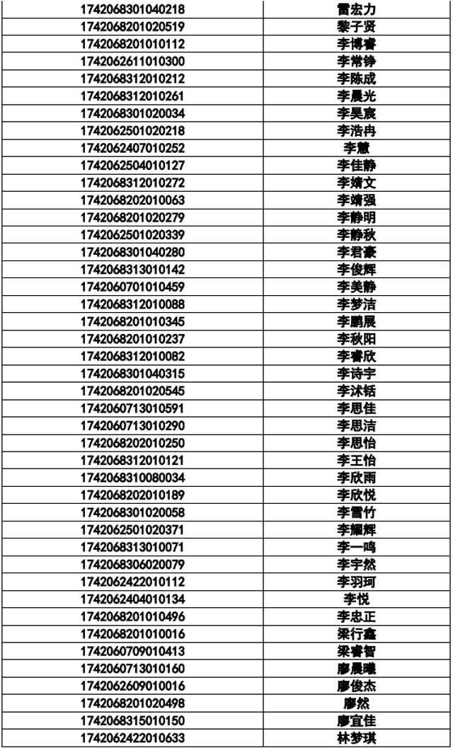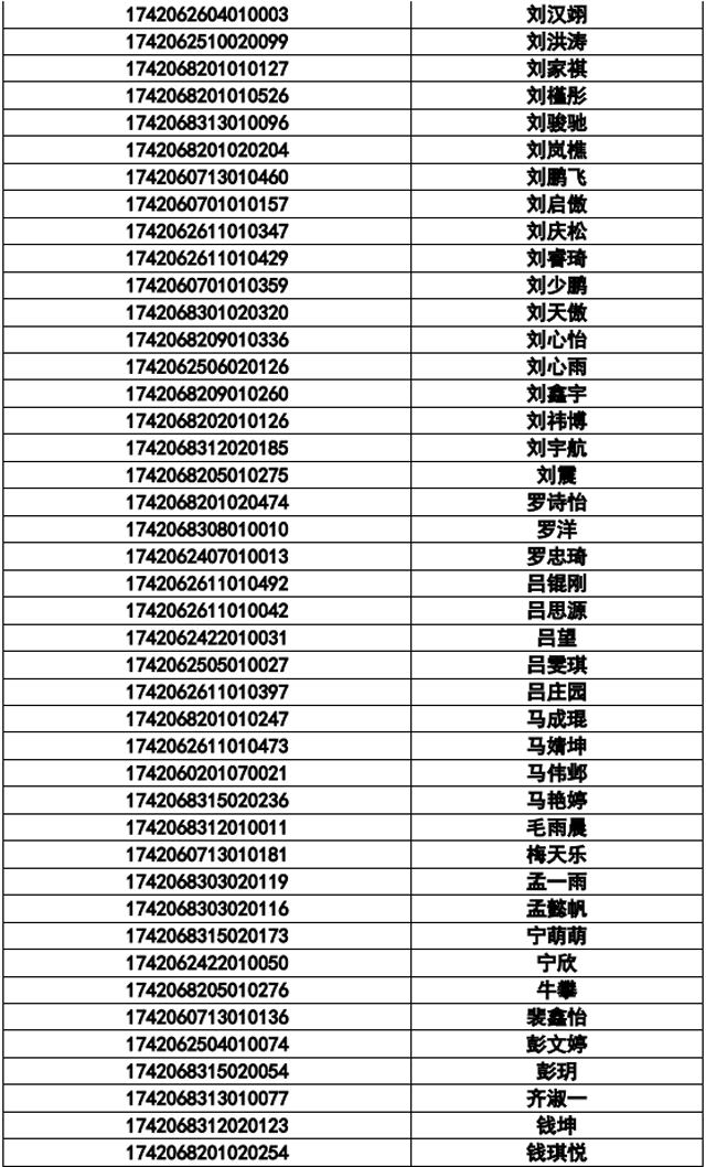 襄陽(yáng)三中實(shí)驗(yàn)中學(xué)2017年統(tǒng)招名單