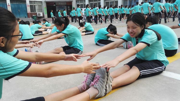痛苦的拉伸訓(xùn)練啊!更痛苦的是兩個(gè)一米七的大長(zhǎng)腿分在一組……