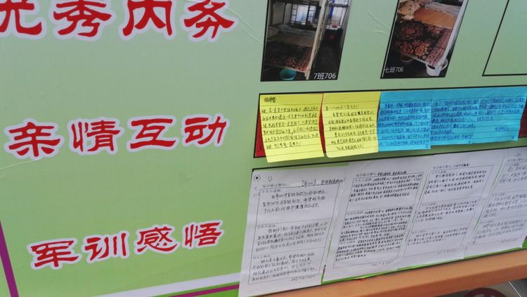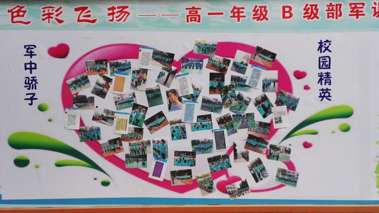 嚴(yán)明的紀(jì)律,離不開(kāi)濃濃的溫情。級(jí)部的軍訓(xùn)展板成為校園里一道靚麗的風(fēng)景線。