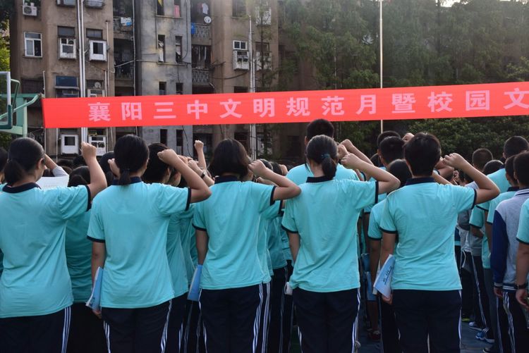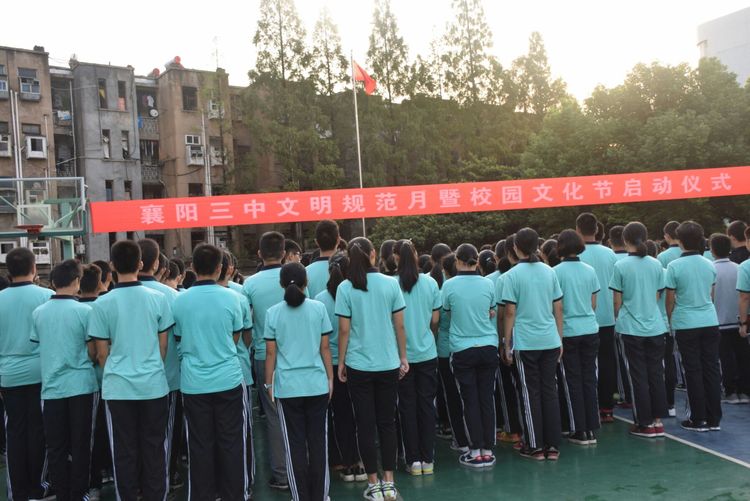 2017年9月11日上午6:30,襄陽三中高一年級的全體師生們在莊嚴的國旗下舉行了新學期開學的第一次升旗儀式。整齊有序的隊列,安靜肅穆的操場,雄壯的國歌聲和鮮艷的五星紅旗拉開了我校秋季開學的序幕。
