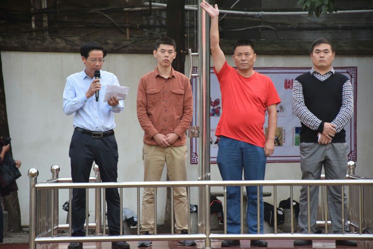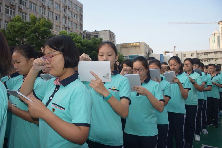 高一(17)班王世豪同學帶領(lǐng)大家進行入學宣誓!