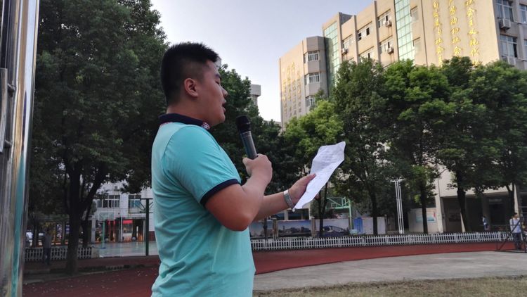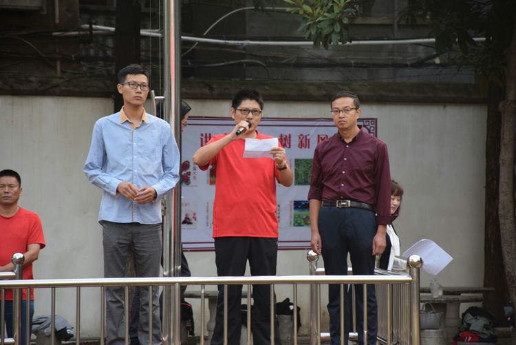 曹校長向高一學生介紹A、B級部主任。級部主任分別發(fā)表了慷慨激昂的演講,決不辜負學校和家長們的信任重托,狠抓習慣養(yǎng)成教育,再創(chuàng)三中奇跡。