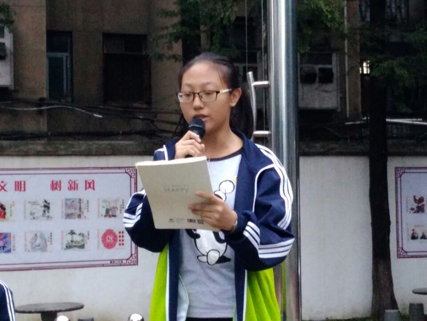 高一B級(jí)部學(xué)生李楠欣同學(xué)發(fā)言,她發(fā)言慷慨激昂,獲得了同學(xué)們的一陣陣掌聲。