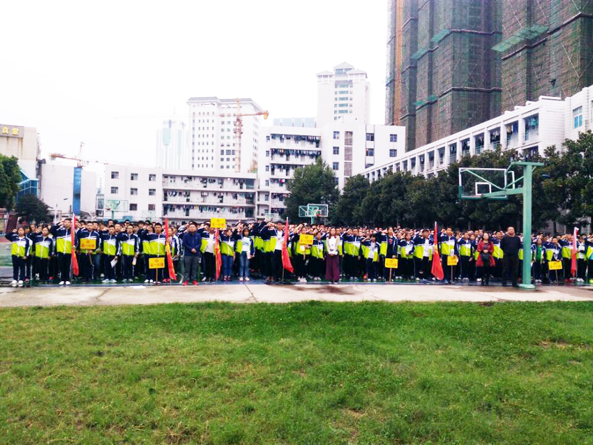 由學(xué)生代表帶領(lǐng)高一B級(jí)部全體師生宣誓。