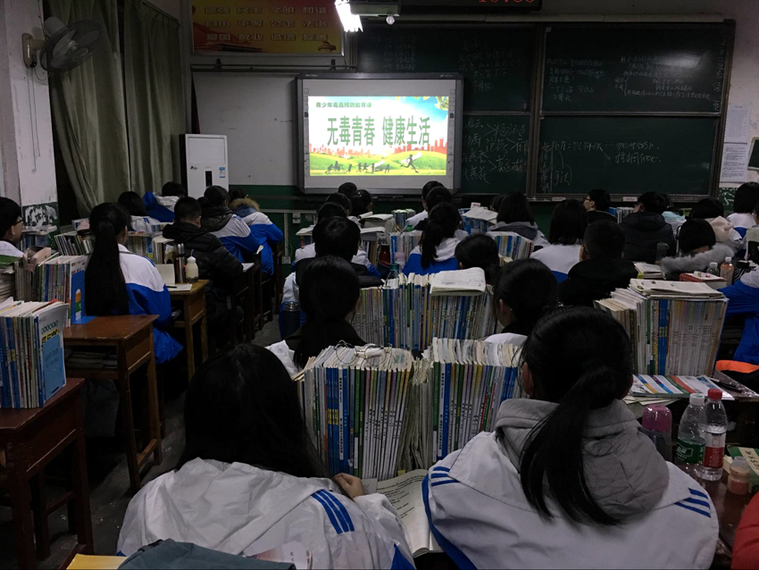 2017年11月19日星期日下午,襄陽三中召開以"無毒青春 建康生活"為主題的禁毒班會。根據(jù)巜全國青少年毒品預(yù)防教育規(guī)劃(2016一2018)》的要求,我校開展了形式多樣的禁毒教育宣傳活動,如禁毒知識展板、拒絕毒品簽名寄語等等。當前社會禁毒形勢不容小覷,學(xué)校有責(zé)任有義務(wù)普及禁毒知識,號召全體學(xué)生,珍愛生命,拒絕毒品,自覺抵御新型毒品的侵蝕,積極投身于禁毒斗爭行列,為國家禁毒事業(yè)貢獻自己的一份力量。