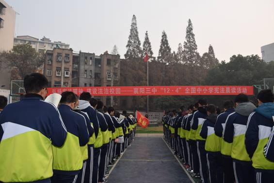12月4日是中華人民共和國第四個“國家憲法日”,主題是“弘揚憲法精神,建設(shè)法制中國”。襄陽三中隆重舉行憲法晨讀活動,由政教處、團委主辦?;顒訌那f嚴的升旗儀式開始,由團委副書記吉芳主持,政教處主任張東領(lǐng)讀,師生齊聲誦讀。學校通過憲法晨讀活動、法制教育宣傳展板、電子顯示屏等弘揚憲法精神,落實法制教育,增強廣大師生的法律意識,引導師生做“學法、懂法、知法、護法、守法”的好公民。