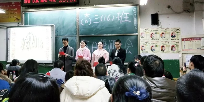 班主任和科任老師來(lái)到班會(huì)現(xiàn)場(chǎng)寄語(yǔ)學(xué)生,提出殷切希望