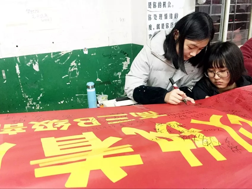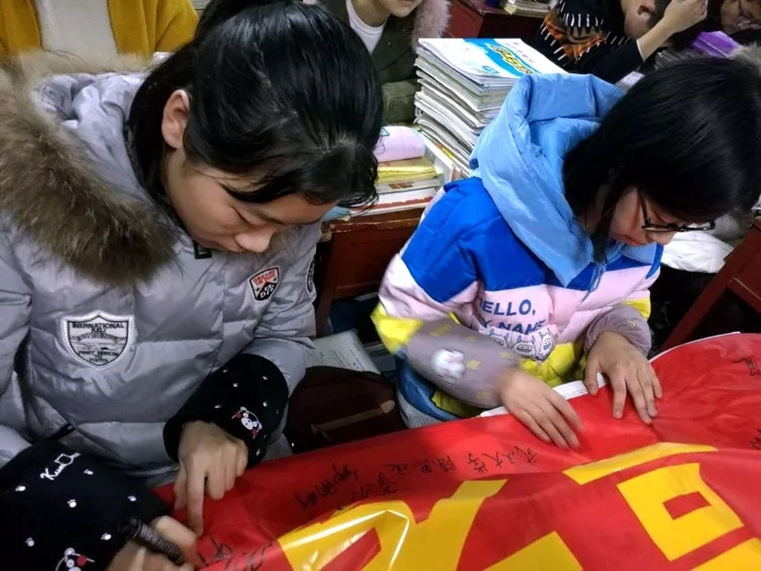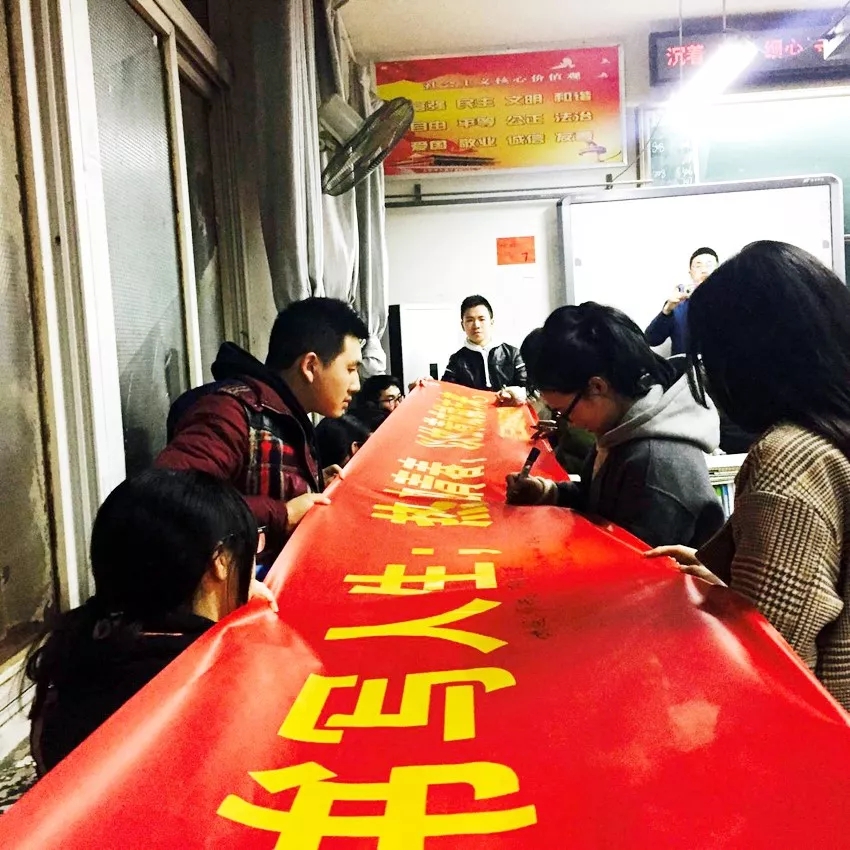 最后,各班學(xué)生在沖刺橫幅上簽字,書(shū)寫(xiě)了青春的奮斗誓言。