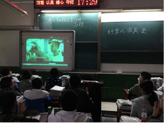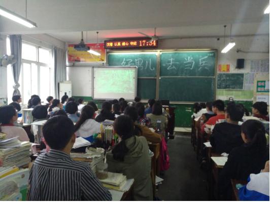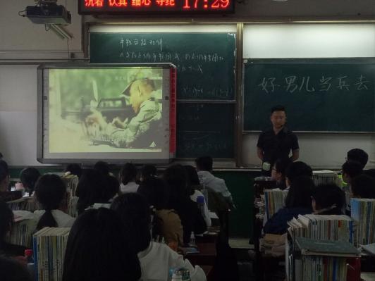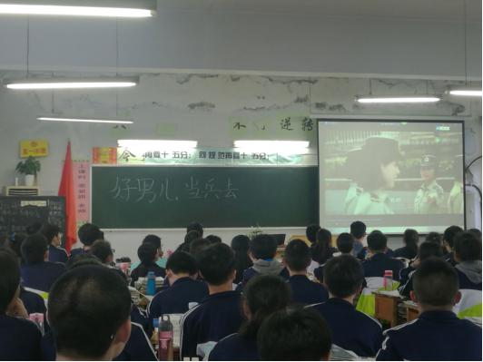 2018年5月6日下午,根據(jù)《襄陽市2018年度征兵工作實(shí)施方案》的要求,我校開展了以“好男兒,當(dāng)兵去”為主題的班會,組織學(xué)生觀看"湖北省征兵宣傳視頻",激發(fā)青年學(xué)生獻(xiàn)身國防的熱情。