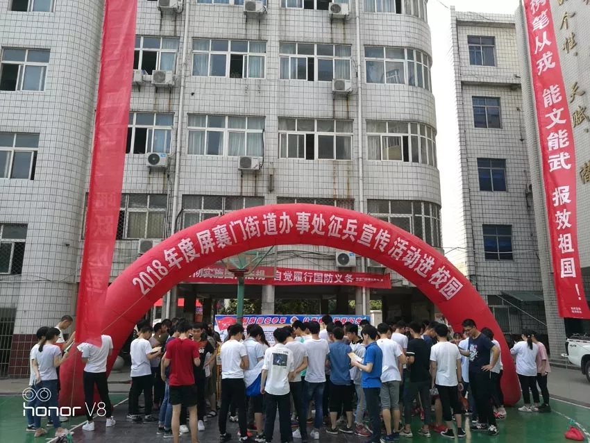 為加強愛國主義和國防教育,落實《襄陽市2018年度征兵工作實施方案》的文件精神,切實做好征兵宣傳工作,5月16日,屏襄門街道辦事處聯(lián)合我校開展了“征兵宣傳進(jìn)校園”活動,主題是“貫徹實施國防法規(guī),自覺履行國防義務(wù)”。街道辦事處工作人員向前來咨詢的高二、高三年級同學(xué)認(rèn)真講解襄陽市征兵工作的流程,為有意投身軍旅的同學(xué)們解惑答疑。