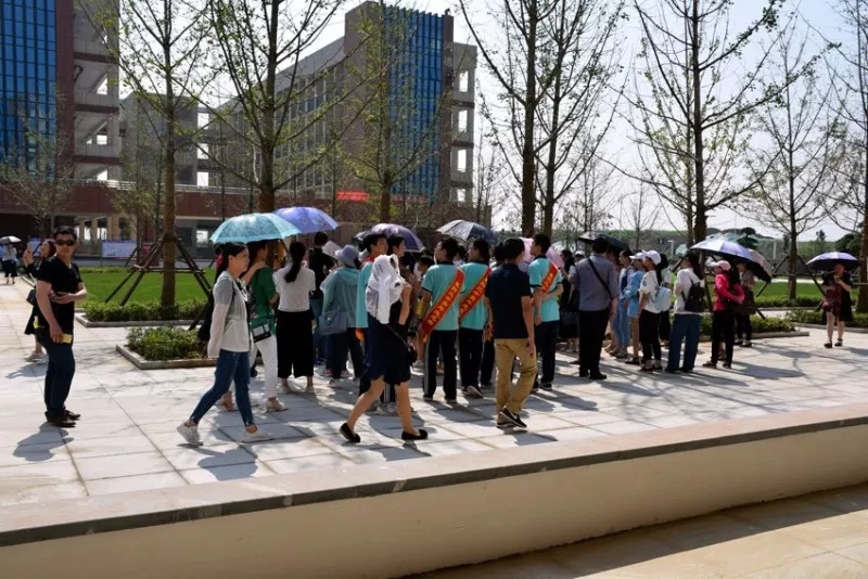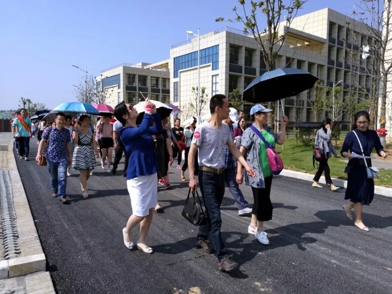 6月3日,我校新校區(qū)對襄陽市民開放。一大早,許多市民便迫不及待地來到三中新校區(qū)參觀。上午九時許,市民前來參觀到達高潮,一撥接著一撥。市民們饒有興趣地參觀了三中新校區(qū)后,不停地贊揚新校區(qū)面積廣,設(shè)施全,綠化上檔次,文化氛圍濃,特別讓他們點贊的是:教室充足,每個年級1棟教學樓,適合標準班額教學,每個教室都將安裝空調(diào)和先進的電化教學設(shè)備;學校將建設(shè)一流的理化生實驗室、創(chuàng)客實驗室等;學生住宿條件好,每個寢室都有獨立衛(wèi)生間、熱水,都將安裝空調(diào);食堂很大,可同時容納6000人就餐。