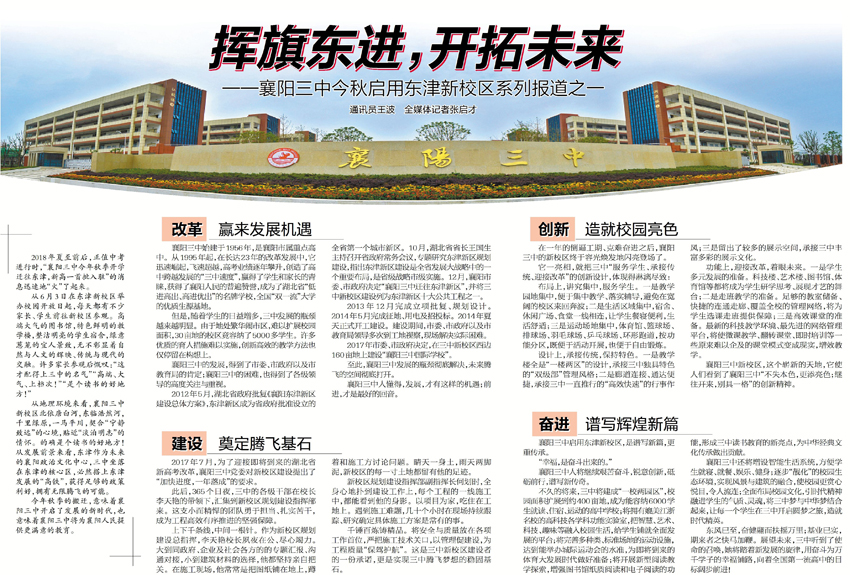 2018年夏至前后,正值中考進行時,“襄陽三中今年秋季開學(xué)遷往東津,新高一首批入駐”的消息迅速地“火”了起來。
