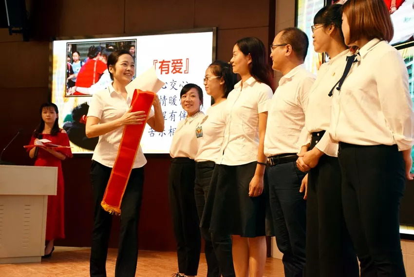 ▲副校長吳興蘭給優(yōu)秀教師頒獎(jiǎng)