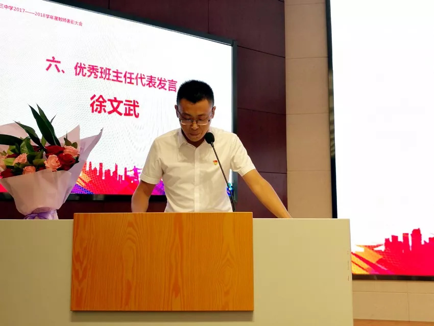 徐文武老師作為功勛班主任代表,作了題為《著力打造班級競爭的軟實(shí)力》的發(fā)言,交流自己班級管理的經(jīng)驗(yàn),介紹具體做法,從中可見他管班煞費(fèi)苦心,把細(xì)節(jié)做到極致,高考中班級取得優(yōu)異成績。
