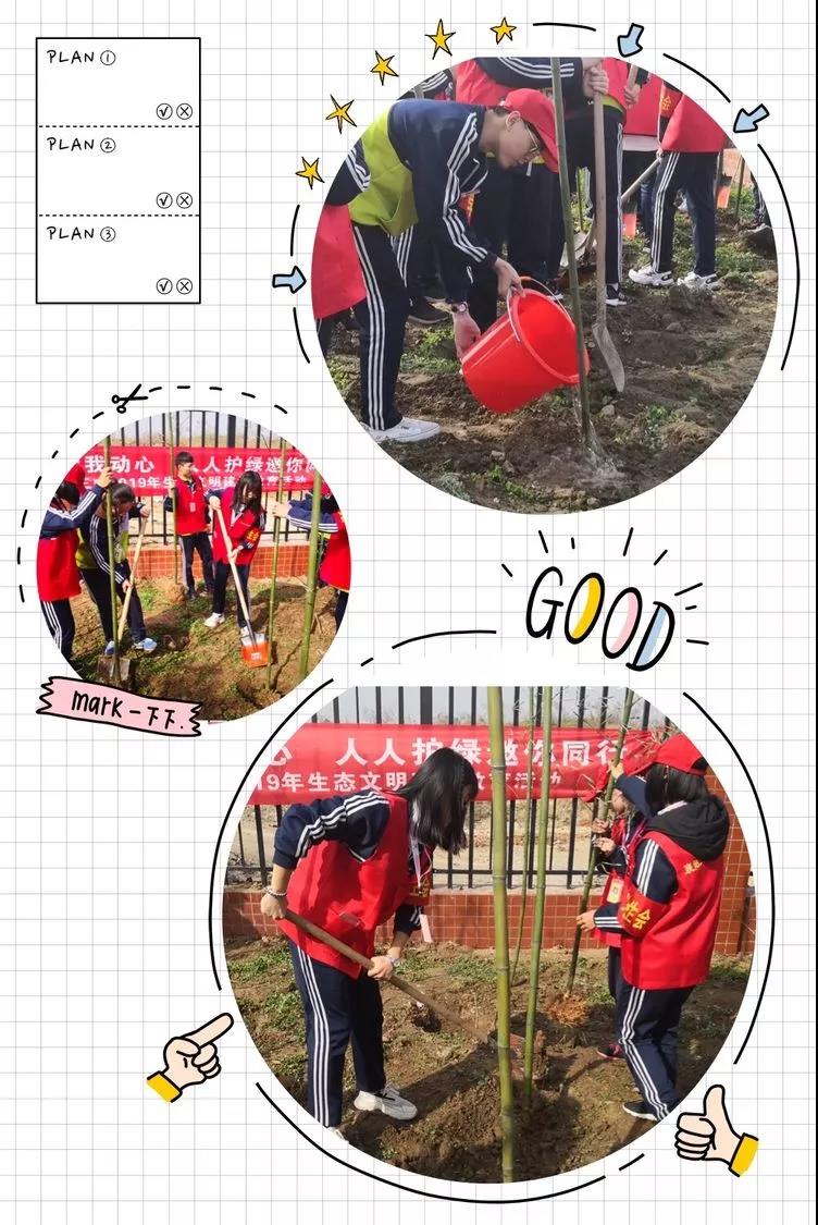 把一棵棵小樹苗根植于土壤,這是對生態(tài)文明的實際踐行。我們種下的每棵樹,都為生態(tài)文明建設(shè)貢獻(xiàn)了一份力量。不積跬步無以至千里,不集細(xì)流無已成江河,人人關(guān)注生態(tài)文明,個個爭當(dāng)綠色使者,愿我們的天更藍(lán)、山更綠、水更清、校園更美麗、環(huán)境更美好 !