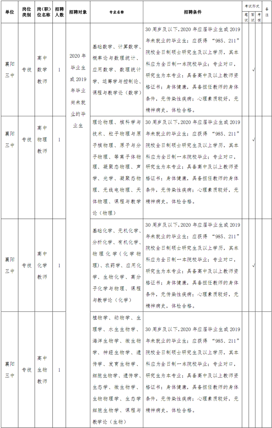 襄陽(yáng)三中2020年度公開(kāi)招聘緊缺高層次專(zhuān)業(yè)人才崗位一覽表