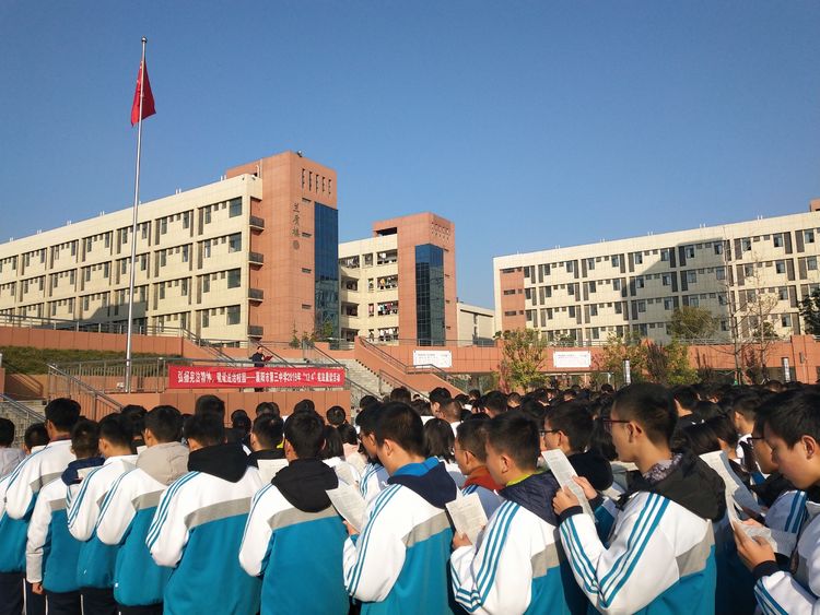 ▲2019年12月4日早上,高一B級部全體師生齊聚圓夢廣場,舉行升旗儀式。升旗儀式由團(tuán)委書記吉芳主持。