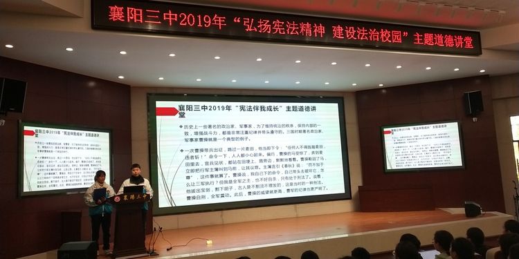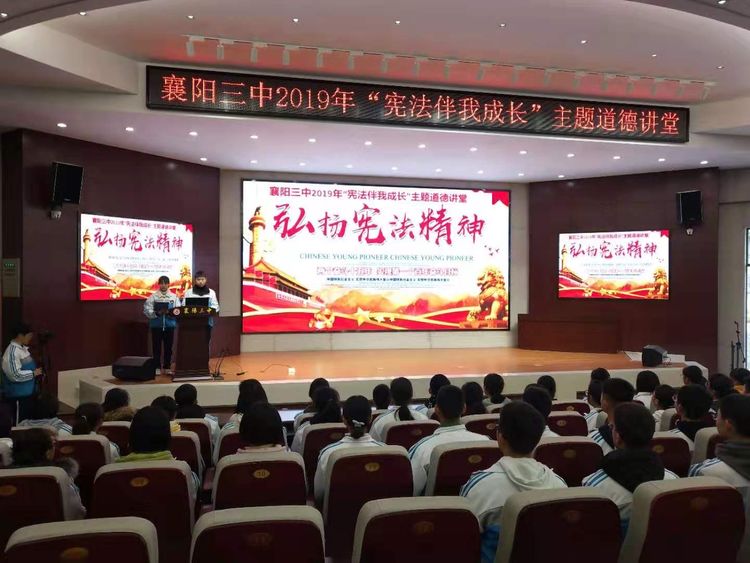 學(xué)校利用校園電視臺、升旗儀式、道德講堂、電子顯示屏、展板等途徑積極宣傳憲法精神,弘揚(yáng)憲法權(quán)威。