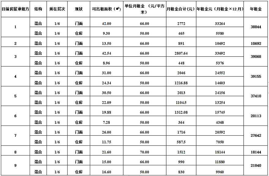 一、出租房面積、底價(jià)(面向門面房從左至右)