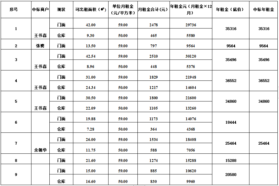 2024年2月19日上午9:00-10:00在襄陽(yáng)市第三中學(xué)明正樓310會(huì)議室,對(duì)門面進(jìn)行了公開(kāi)招租,確定以下商戶為本次中標(biāo)商戶: